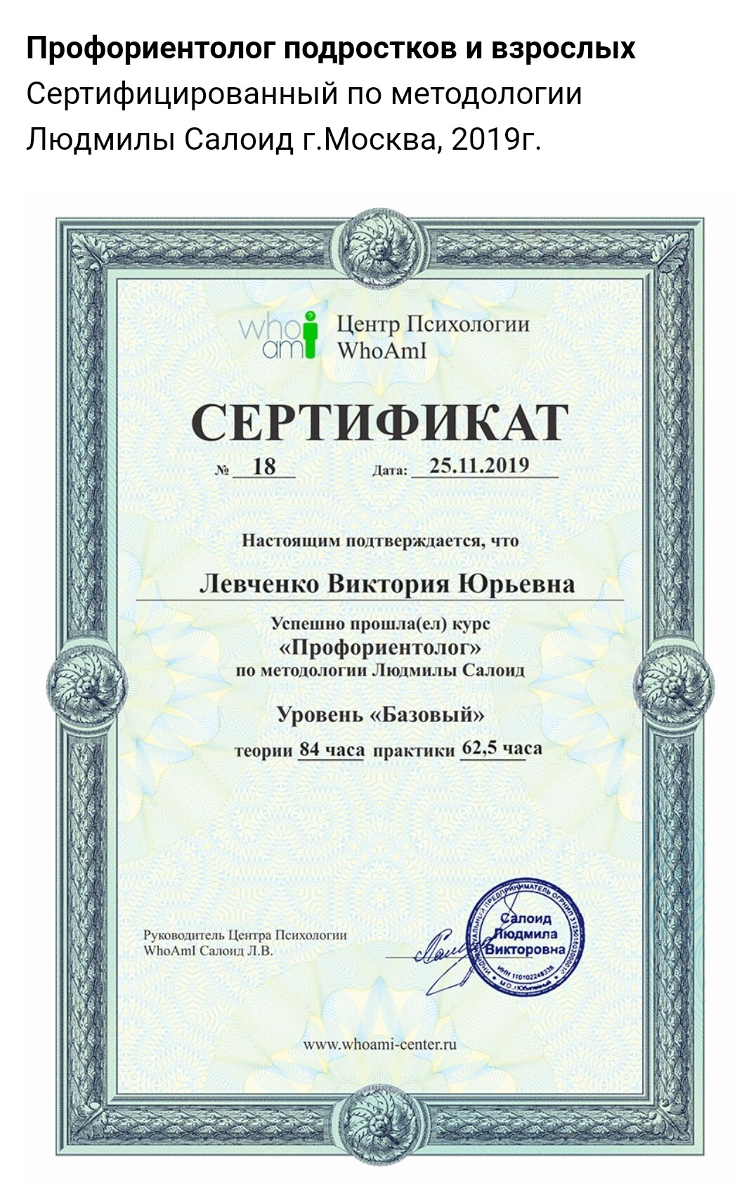 Семейный профориентолог подростков и взрослых (Академия Людмилы Салоид, Школа карьерного менеджмента "Профориентатор подростков" и "Профориентатор взрослых").