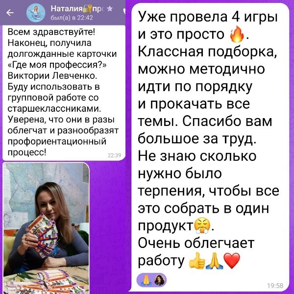 Я прошла много обучений по ведению консультаций, программ, групп в профориентации и получила много опыта внедрения этих знаний, прежде чем начинать делиться своими продуктами с коллегами.