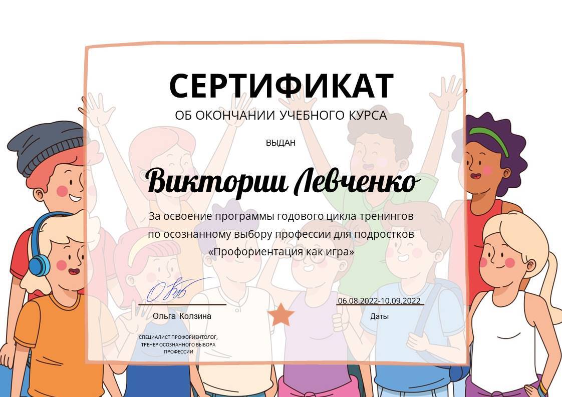 Тренер по профориентации (Международный Эриксоновский университет - тренер, Ольга Колзина "Профориентация как игра" - тренер).
